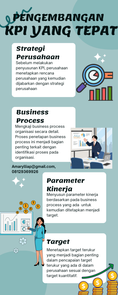 Melakukan proses penyusunan KPI yang tepat dan terstruktur menjadi bagian dari manajemen pengelolaan SDM (Sumber Daya Manusia) di dalam organisasi/perusahaan. Lakukan pengembangan organisasi sesuai dengan target dari perusahaan dan organisasi mampu beradaptasi dengan seluruh tantangan dan target yang diharapkan. Penggunaan referensi eksternal yang tepat dapat memaksimalkan proses yang dimaksud. (amarylliap@gmail.com, 08129369926)