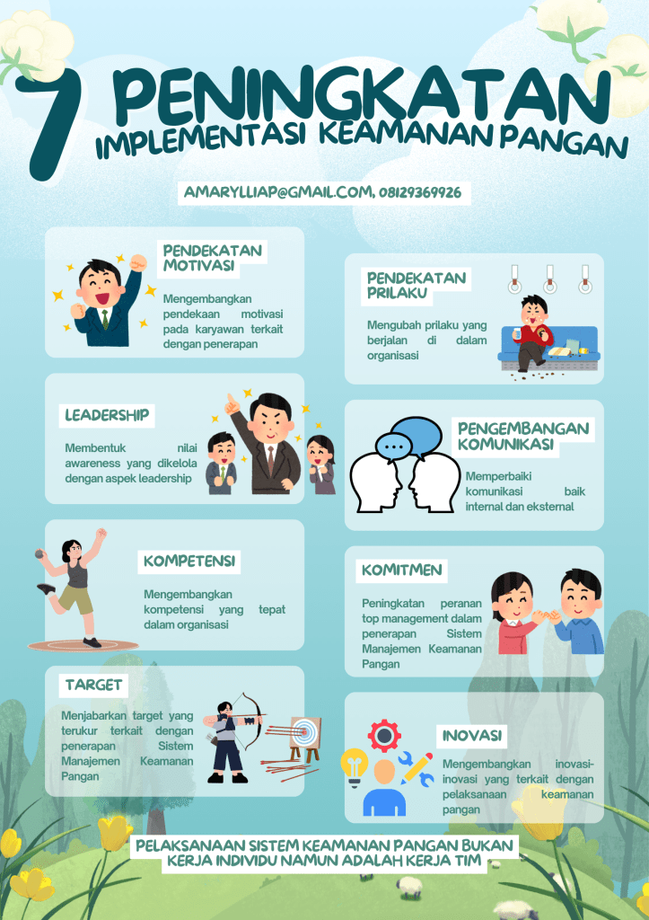 Pelaksanaan Sistem Manajemen Keamanan Pangan, baik itu usaha skala kecil ataupun skala besar, adalah suatu proses pendekatan yang tidak hanya pada pemenuhan standar saja, namun bagaimana proses implementasi tersebut dijalankan dengan baik mulai dari level paling atas sampai dengan level paling bawah di dalam perusahaan/organisasi. Dalam penerapan Sistem Manajemen Keamanan Pangan, tujuan utamanya adalah bukan pada penerapan yang terkait dengan sertifikasi HACCP, ISO 22000, FSSC, BRCGS ataupuan IFS saja. Untuk dapat meningkatkan batasan dari pencapaian implementasi berikut ini adalah beberapa cara yang dapat dilakukan oleh perusahaan untuk meningkatkan implementasi.