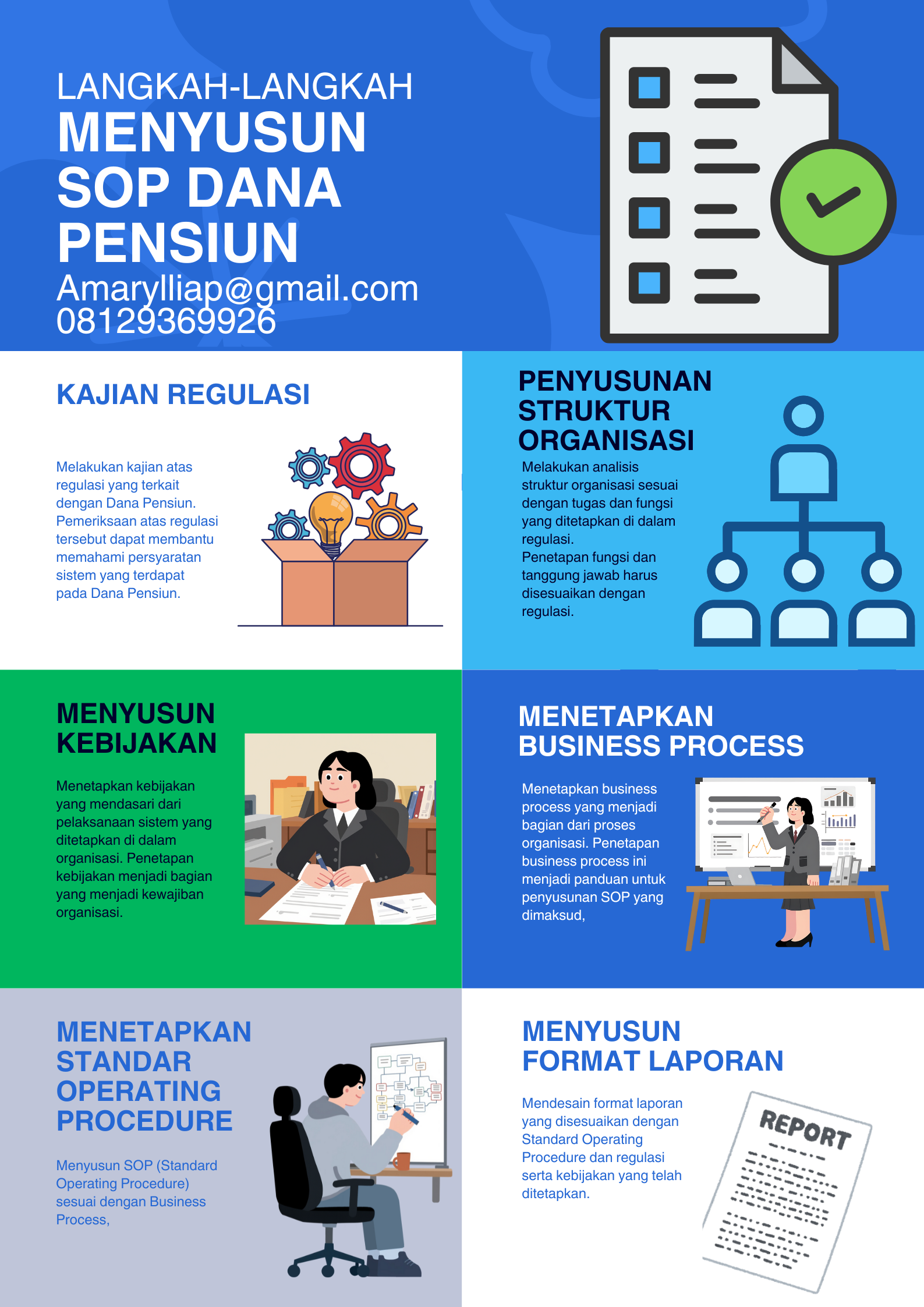 Proses menyusun SOP (Standard Operating Procedure) ini menjadi bagian penting yang dapat dilakukan oleh organisasi pengelola dana pensiun sebagai bentuk kewajiban dari regulator. Lakukan kajian secara rutin untuk memastikan bahwa sistem yang dipergunakan adalah sesuai dengan regulasi dan fungsi proses yang ada di internal organisasi. Lakukan proses pencarian referensi eksternal yang tepat terkait dengan penyusunan SOP dalam organisasi. (amarylliap@gmail.com, 08129369926)