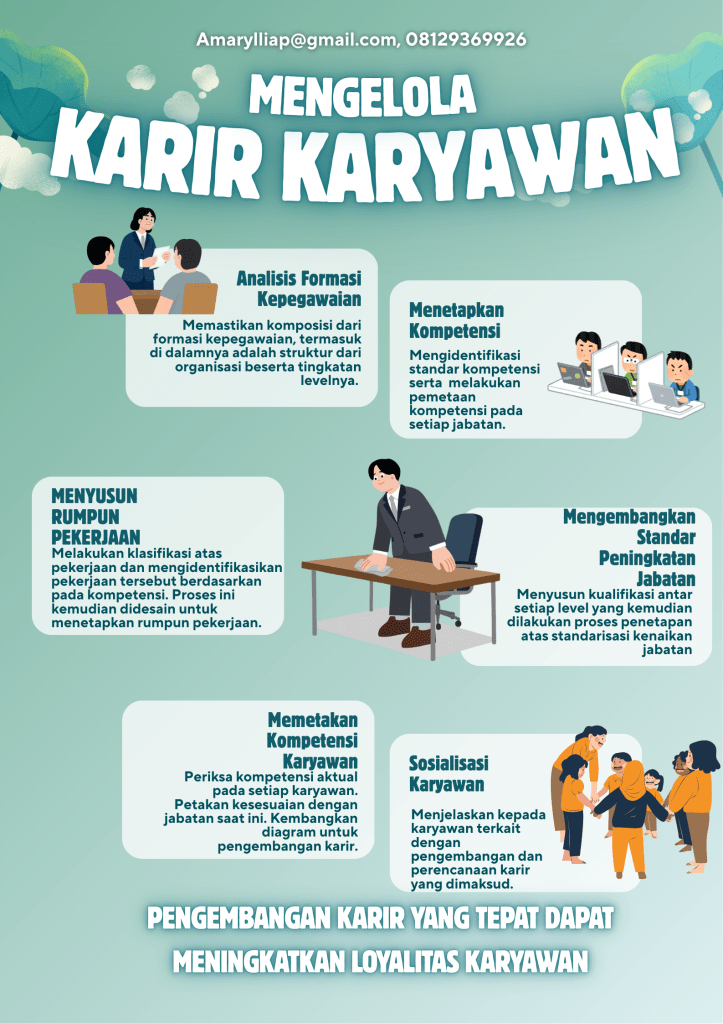 Dalam pengelolaan organisasi, peranan karyawan sangat penting untuk memastikan bahwa pelaksanaan operasional berjalan dengan tepat. Salah satu bentuk penghargaan perusahaan kepada karyawan, selain kompensasi, adalah pengembangan karir karyawan yang bersangkutan. Pengembangan karir ini selalu menjadi upaya bagi karyawan maupun perusahaan untuk dapat memastikan berjalan seiringan dengan kompetensi yang akan dikembangkan di dalam organisasi tersebut.