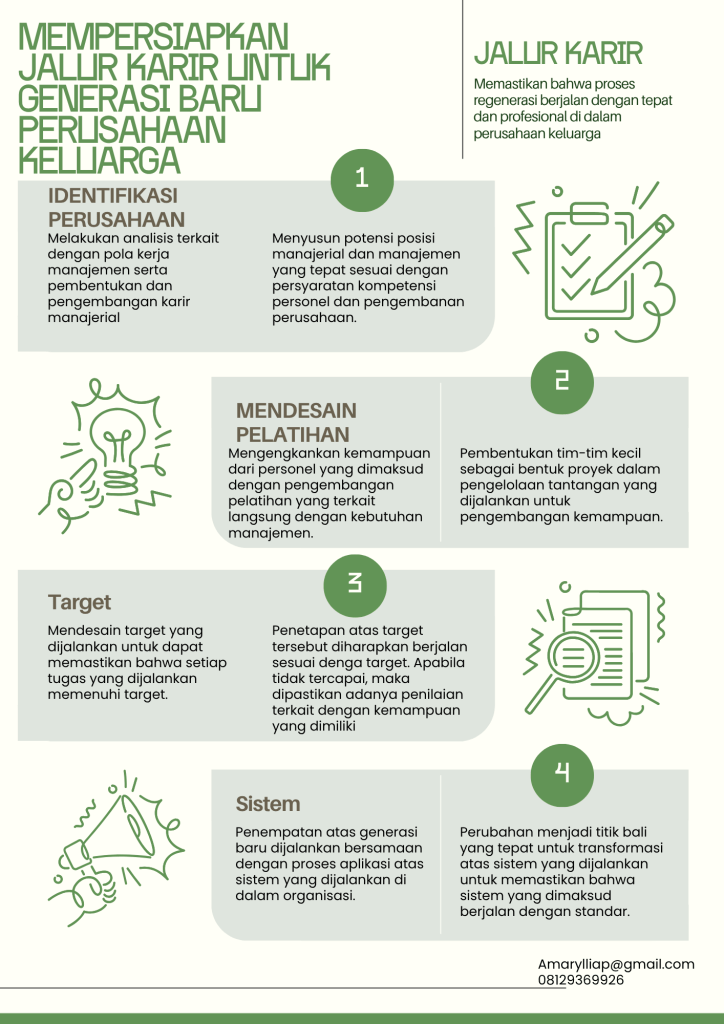 Untuk dapat mempersiapkan keberlangsungan atas perusahaan, berikut ini adalah tahapan yang dapat dilakukan perusahaan untuk mempersiapkan jalur karir pada generasi baru dalam perusahaan keluarga.